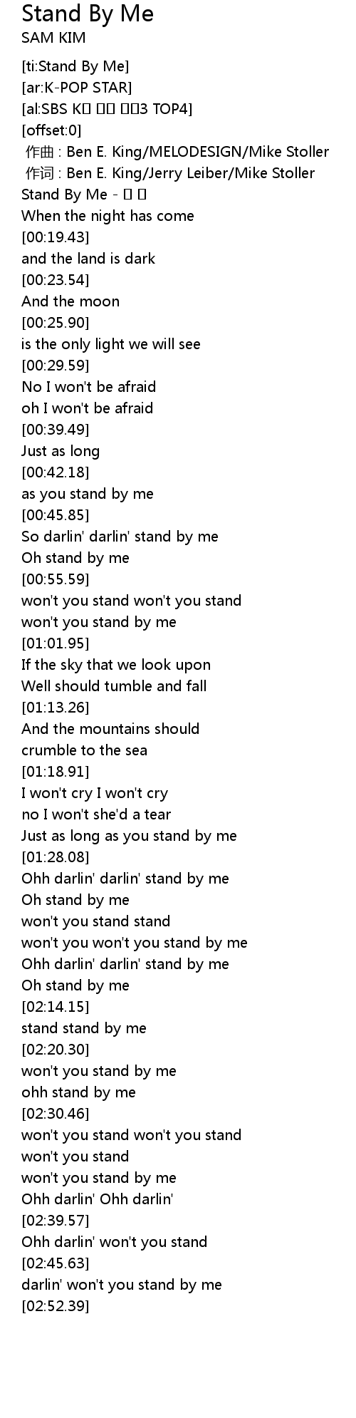 | [00:00.47] | Stand By Me - 샘 김 |