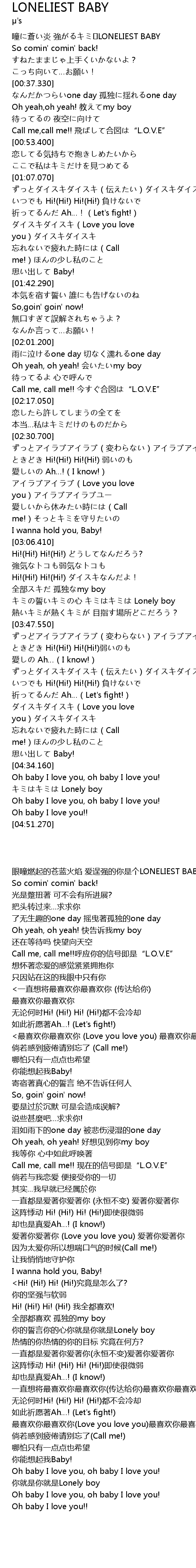 | [00:48.580] | Call me, call me!! fei he tu" L. O. V. E" |