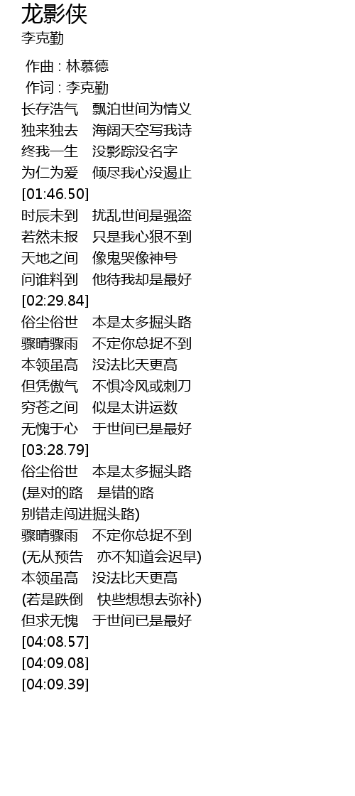 | [04:01.96] | 但求无愧 于世间已是最好 |