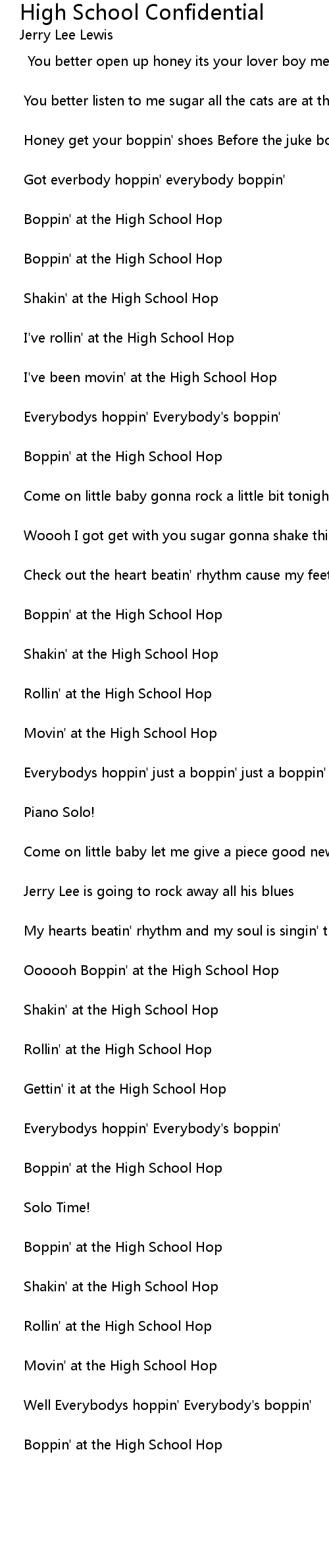 I've been movin' at the High School Hop |