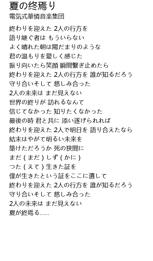 | 終わりを迎えた 2人で明日を 語り合えたなら | |