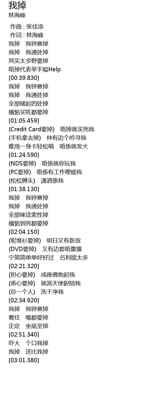 | [01:06.460] | (Credit Card要掉) 唔掉就买死我 |