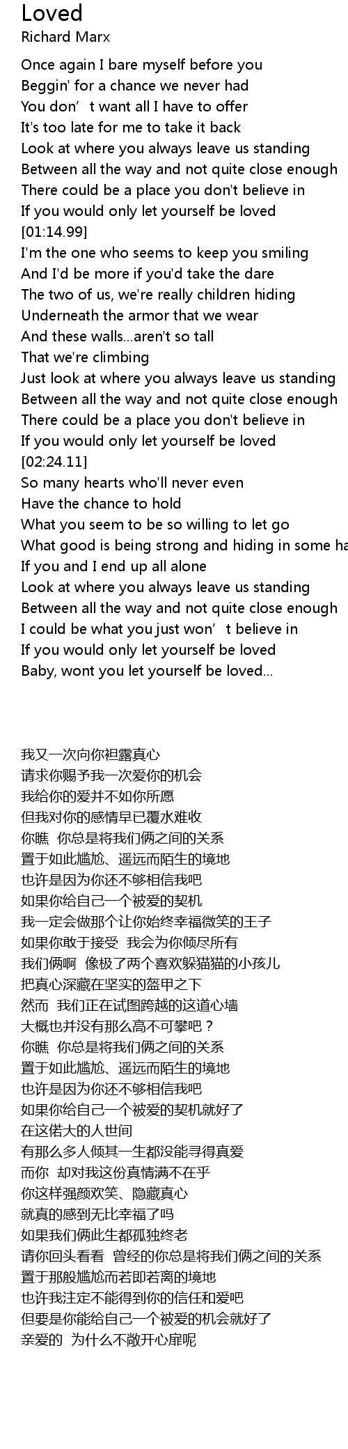 | [02:17.49] | If you would only let yourself be loved |