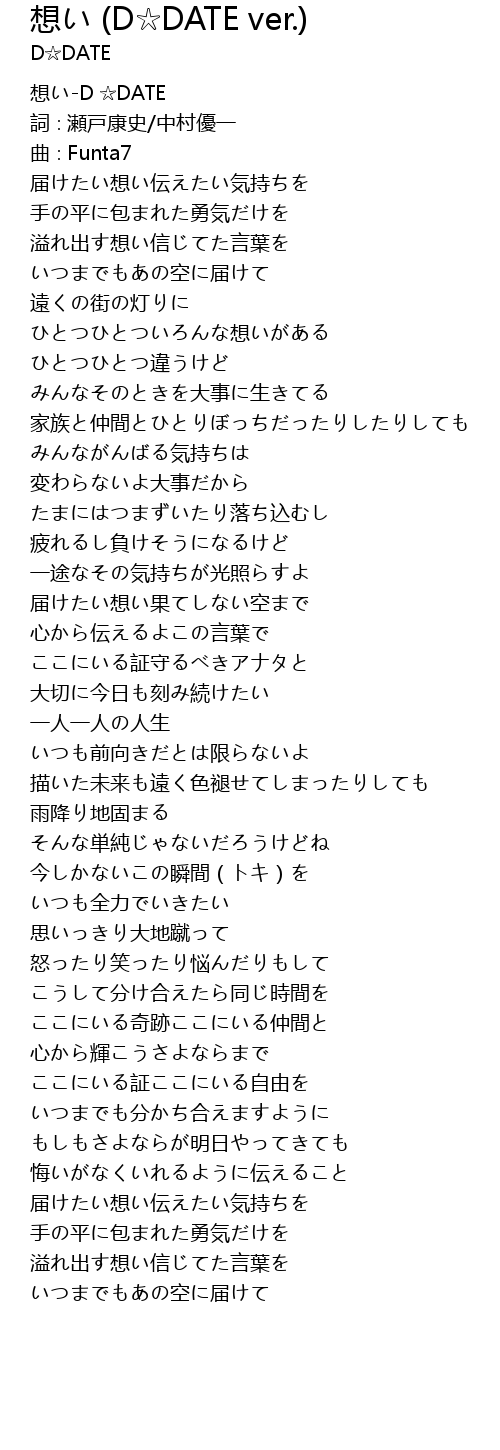 | [00:00.370] | 想い-D ☆DATE |