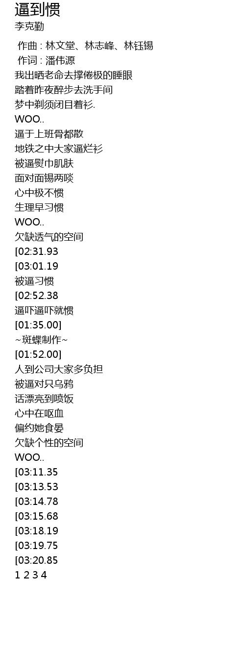 | [02:45.55][02:31.93][02:18.53][01:21.93][01:08.89] | 我被逼习惯 被逼习惯 |