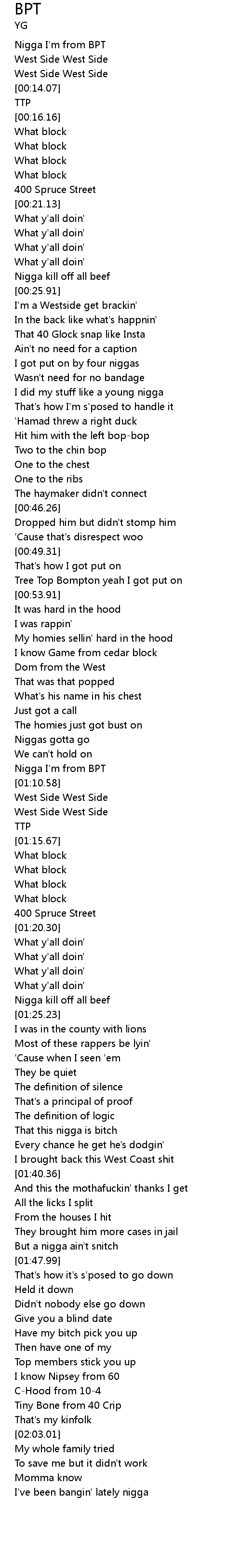 Nigga I'm from BPT |