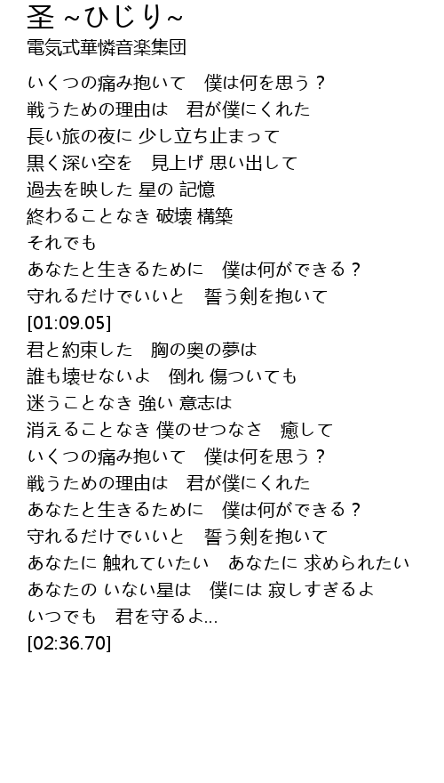 | [01:37.44] | 消えることなき 僕のせつなさ 癒して |