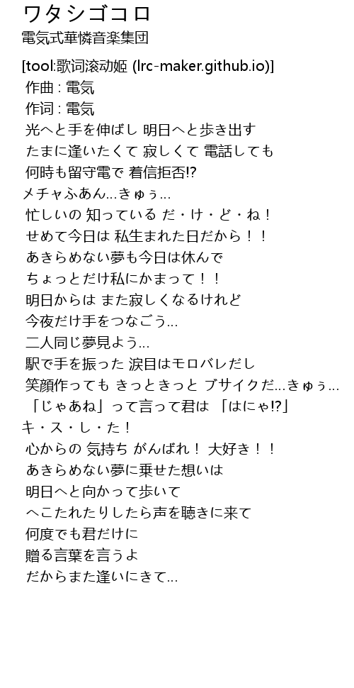 | [00:00.00] | 作曲 : 電気 |