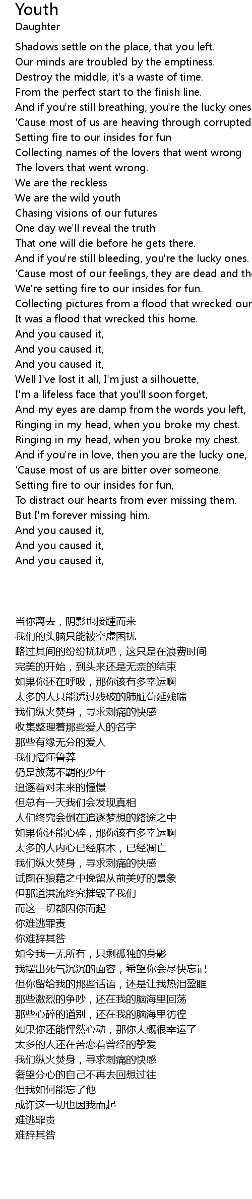 | [00:15.300] | Shadows settle on the place, that you left. |