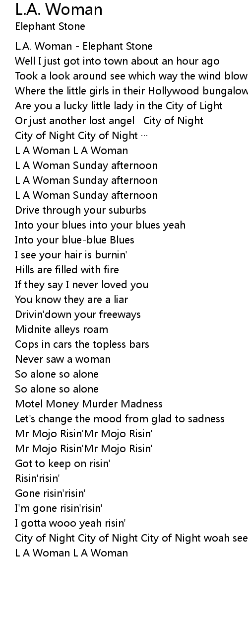 | [00:01.776] | L. A. Woman Elephant Stone |