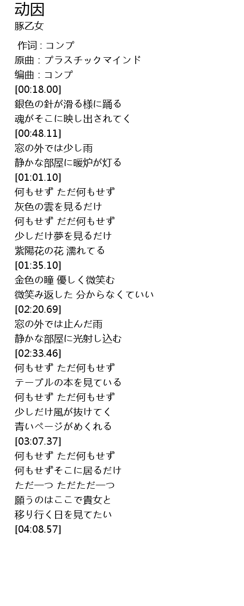 | [00:55.56] | 静かな部屋に暖炉が灯る |