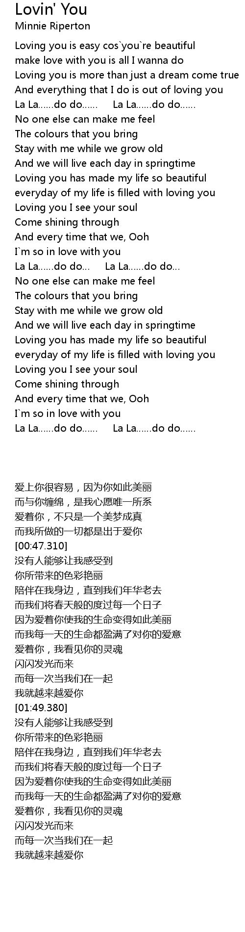 | [00:16.660] | Loving you is easy cos`you`re beautiful |