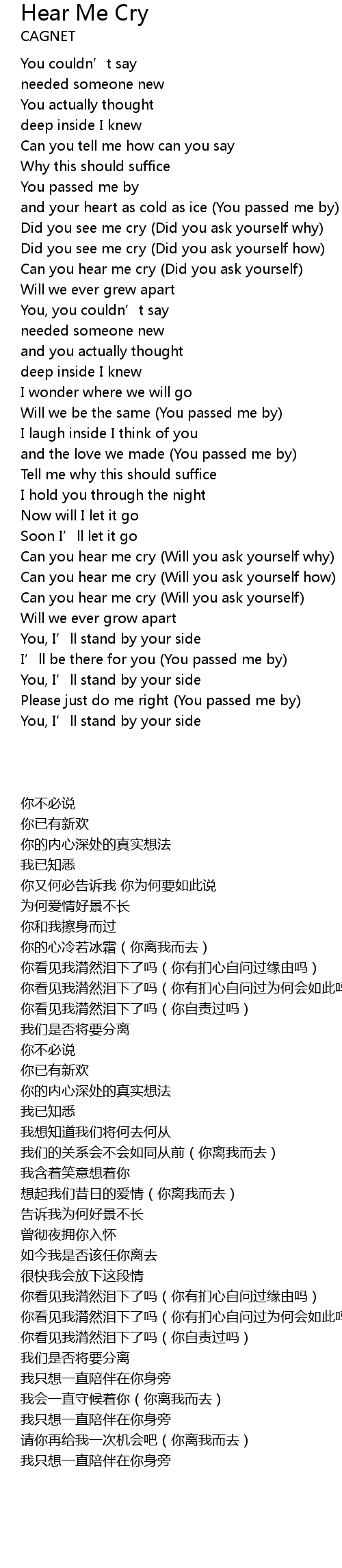 | [00:56.62] | Can you hear me cry Did you ask yourself |