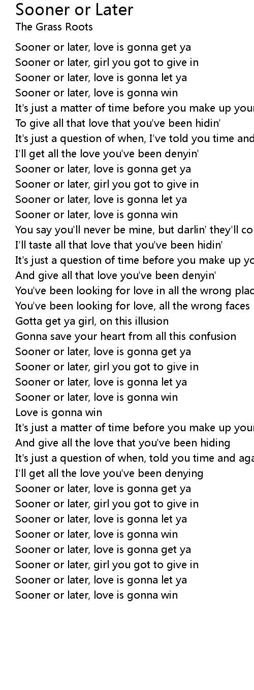 Sooner or later, love is gonna get ya |