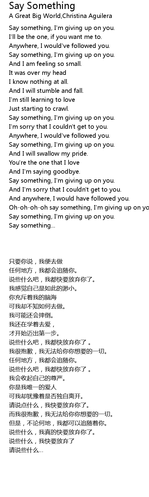 Oh-oh-oh-oh say something, I'm giving up on you. |