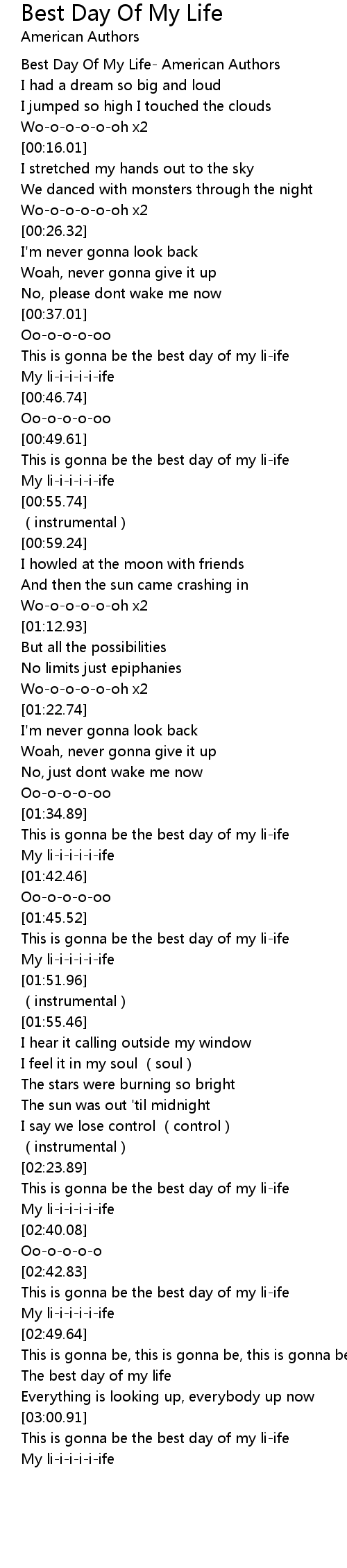 | [00:41.43] | This is gonna be the best day of my li-ife |