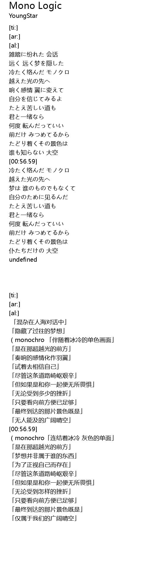 | [01:07.49] | 冷たく络んだ モノクロ |