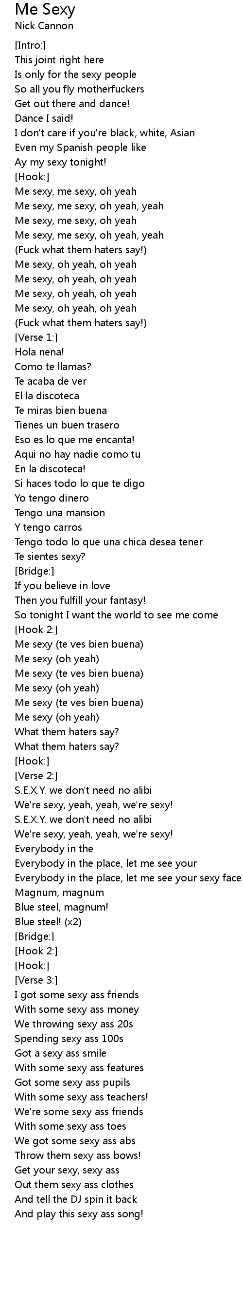 Me sexy, me sexy, oh yeah, yeah |