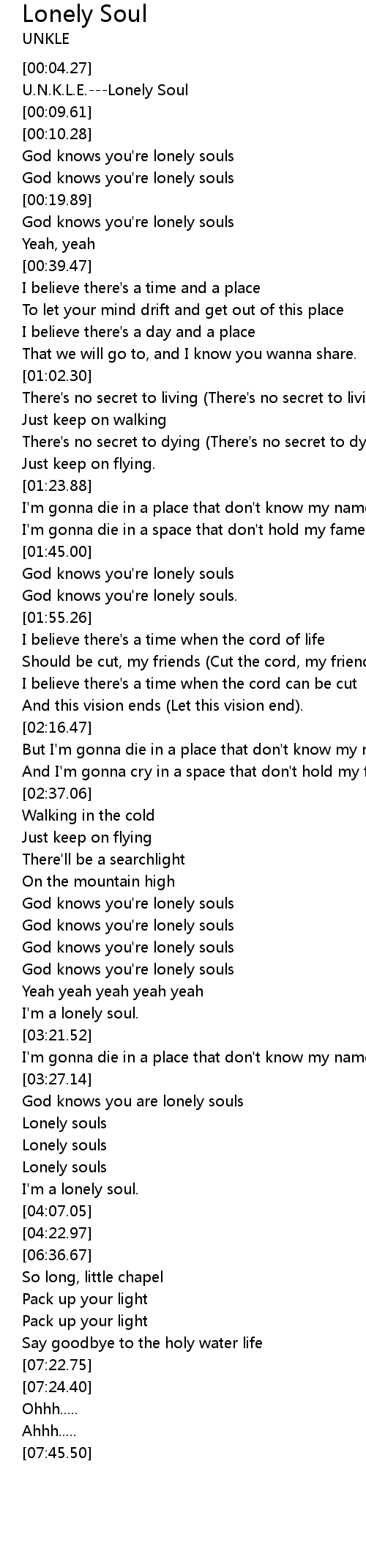 U.N.K.L.E.---Lonely Soul |