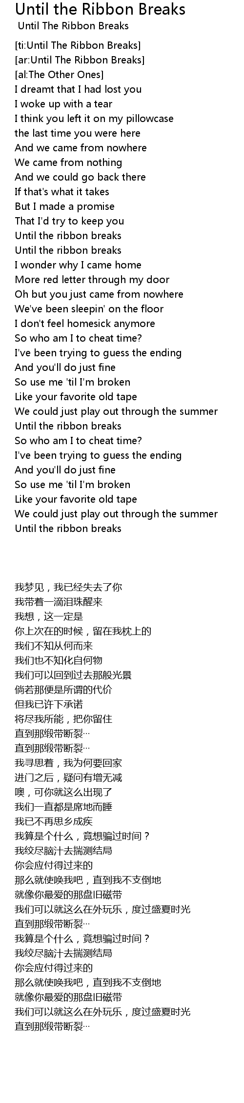 [ti:Until The Ribbon Breaks]