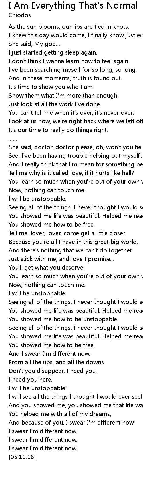 | [04:59.36] | I swear I'm different now. |