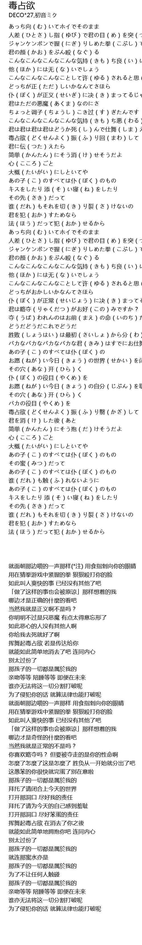 | [03:19.23] | 毒占欲(どくせんよく)振(ふ)り翳(かざ)して 君を消(け)した後(あと |