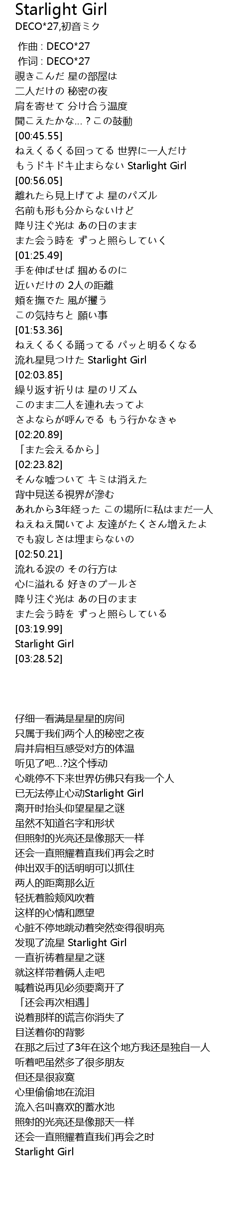 | [03:23.45] | Starlight Girl |
