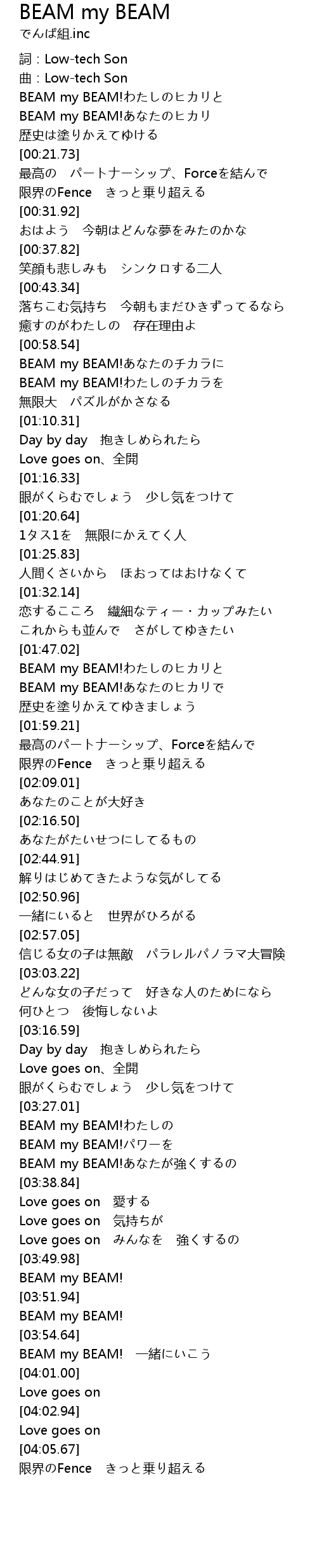 | [03:53.83] | BEAM my BEAM! |