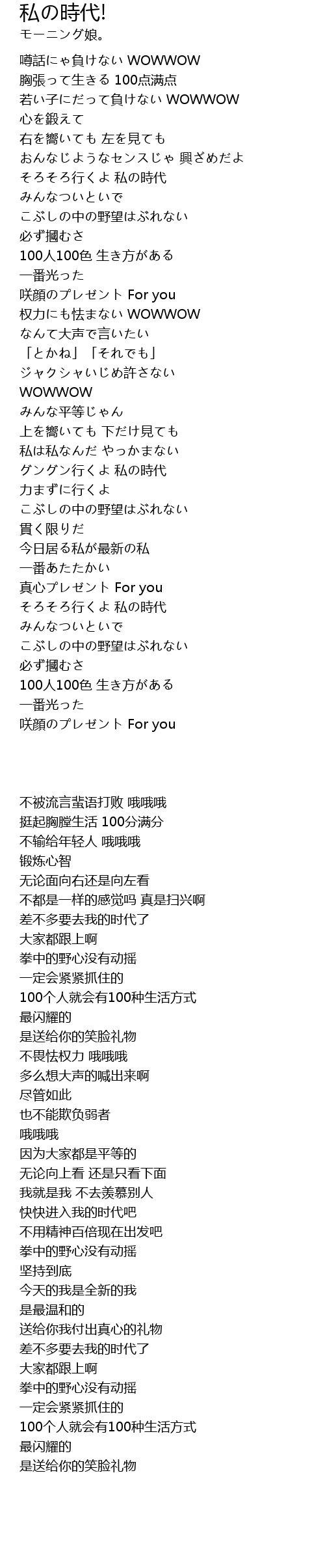 | [00:51.68] | そろそろ行くよ 私の時代 |