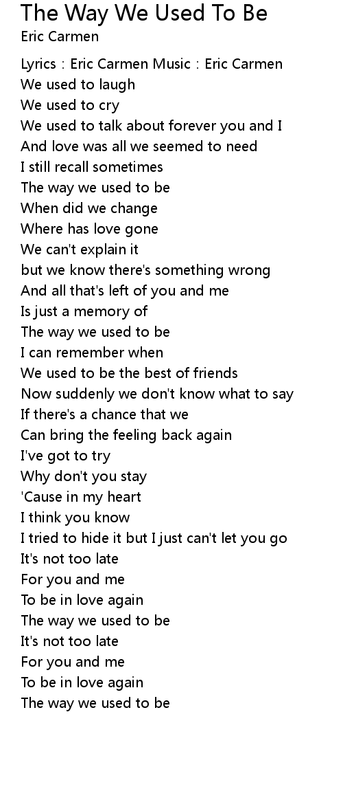 | Lyrics: Eric Carmen Music: Eric Carmen | |