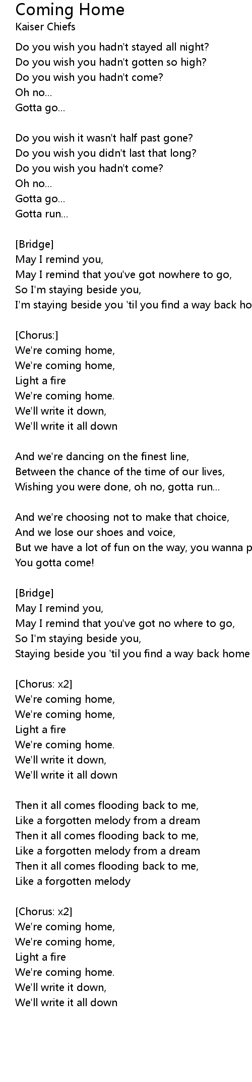 We're coming home, |