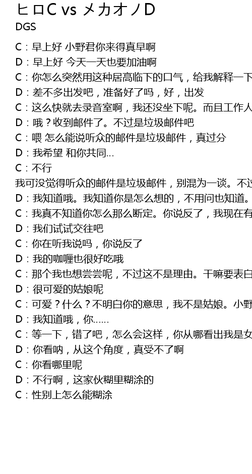| C:可爱?什么?不明白你的意思,我不是姑娘。小野君你一直以为我是女的吗 | |