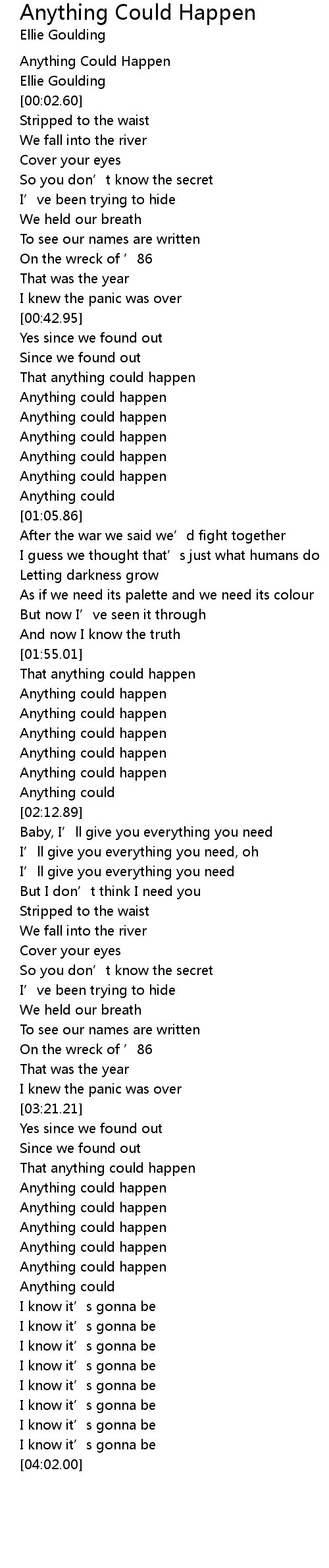 | [02:00.25] | Anything could happen |