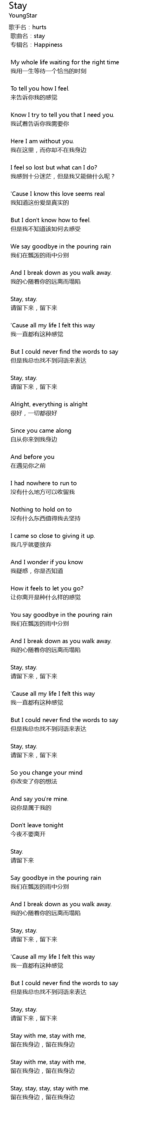 | 歌曲名:stay | |