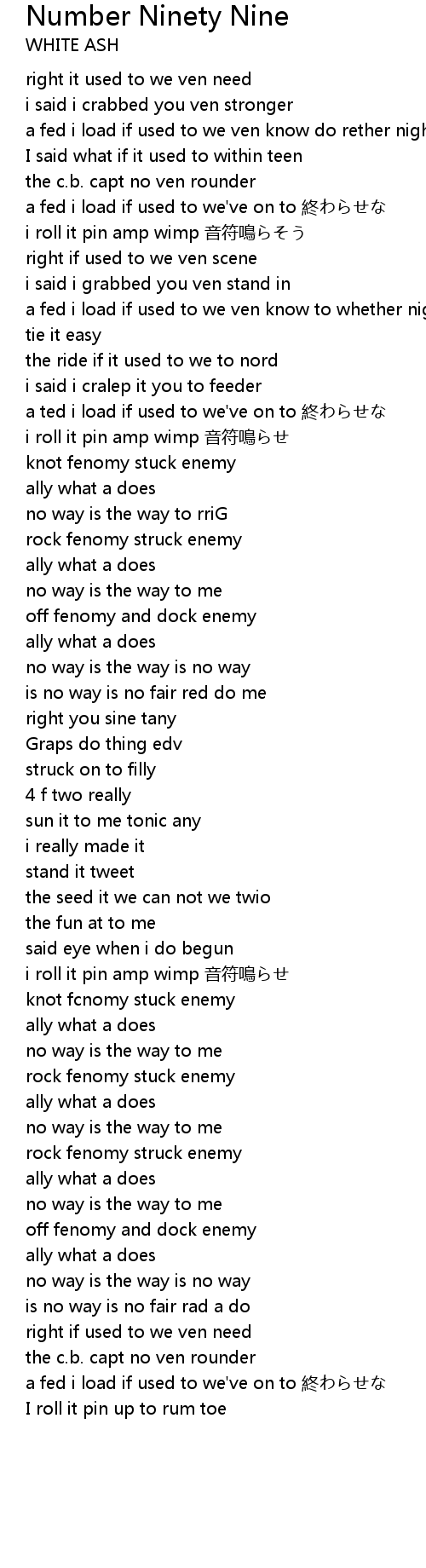 | Song | Number Ninety Nine |