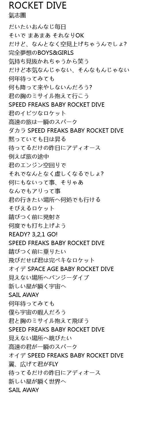 | ダカラ SPEED FREAKS BABY ROCKET DIVE | |