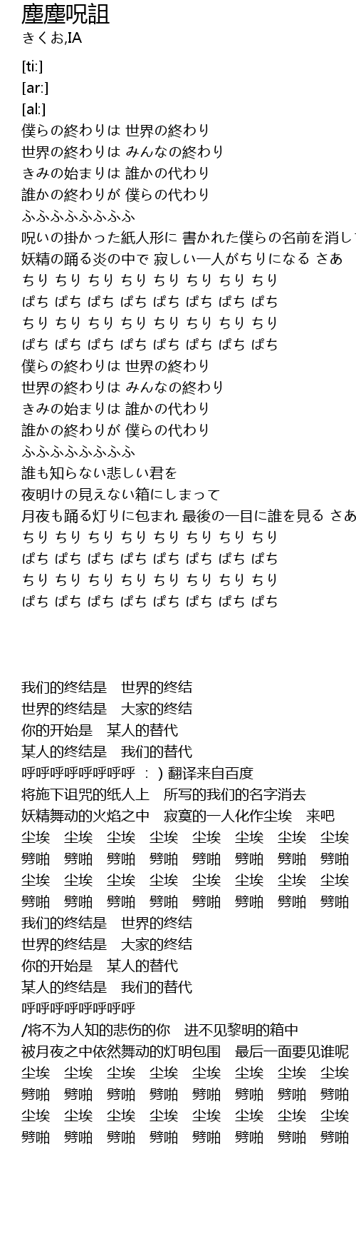 | [00:38] | 呪いの掛かった紙人形に 書かれた僕らの名前を消して |
