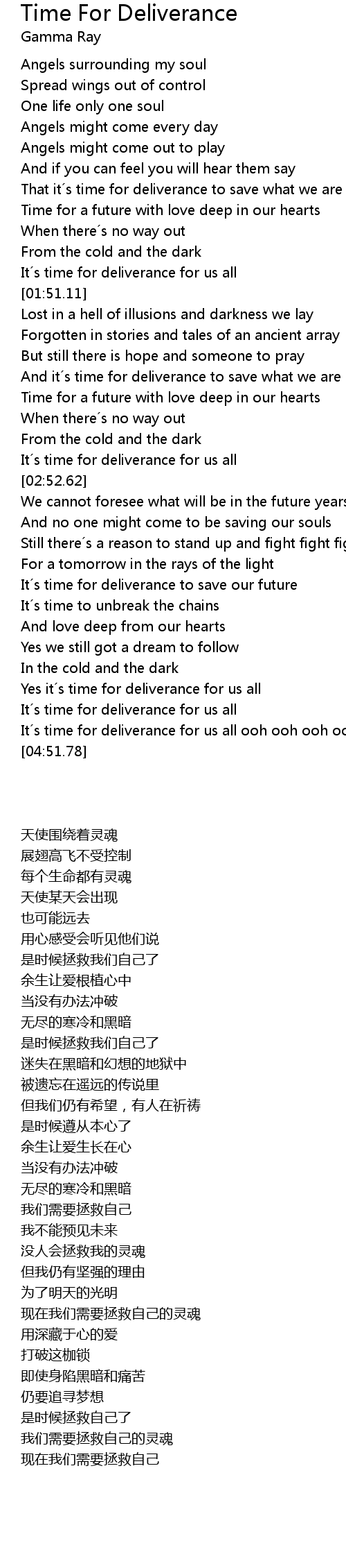 | [04:41.96] | It´s time for deliverance for us all ooh ooh ooh ooh |