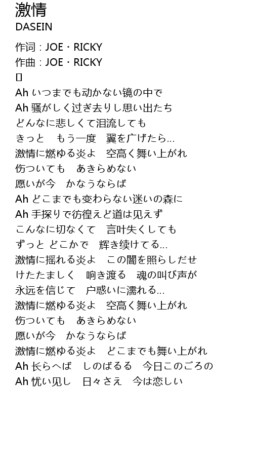 | 激情に摇れる炎よ この闇を照らしだせ | |