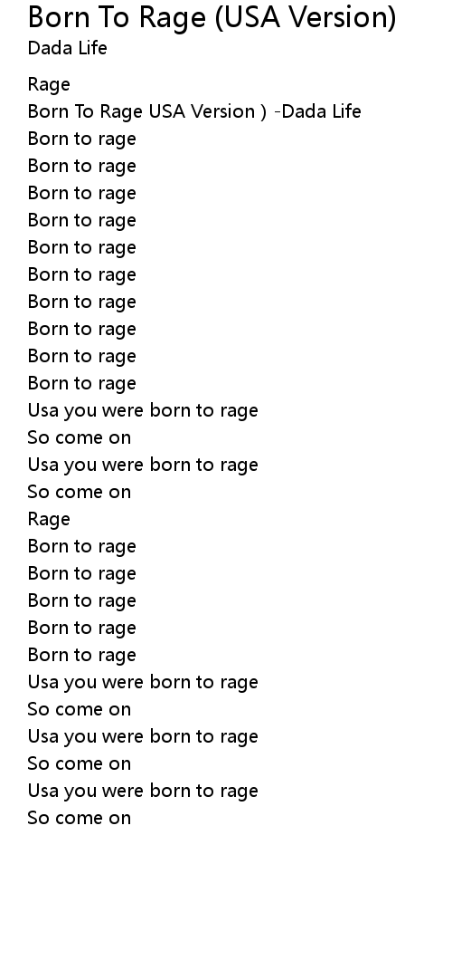 | [00:01.350] | Born To Rage USA Version Dada Life |