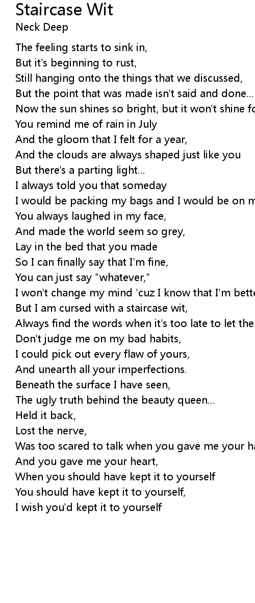 But I am cursed with a staircase wit, |