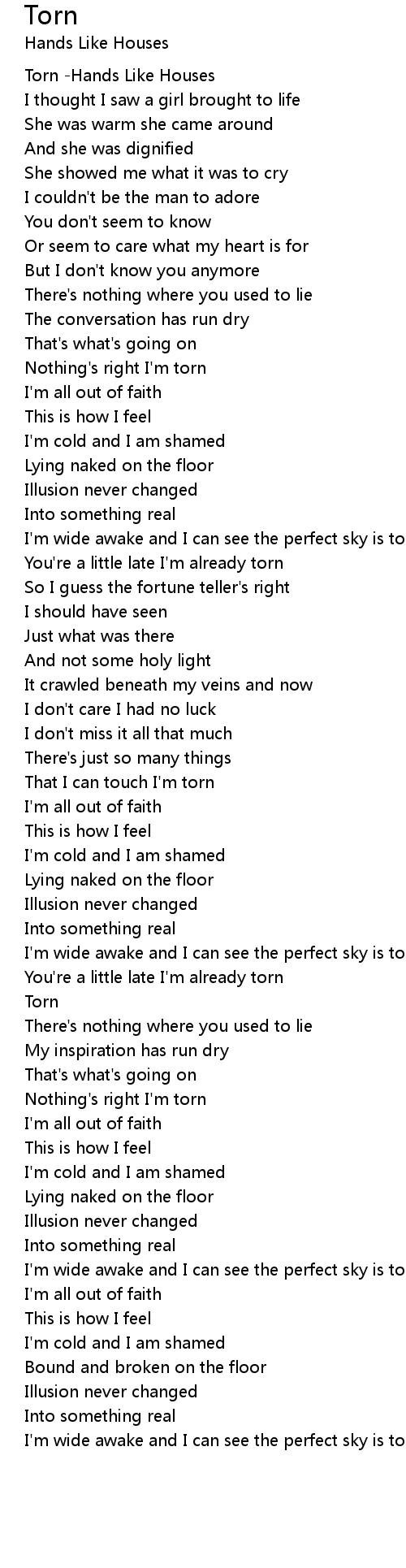 | [02:50.715] | I'm wide awake and I can see the perfect sky is torn |