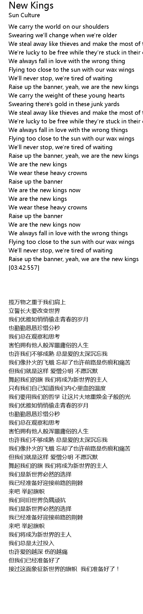 Raise up the banner, yeah, we are the new kings |