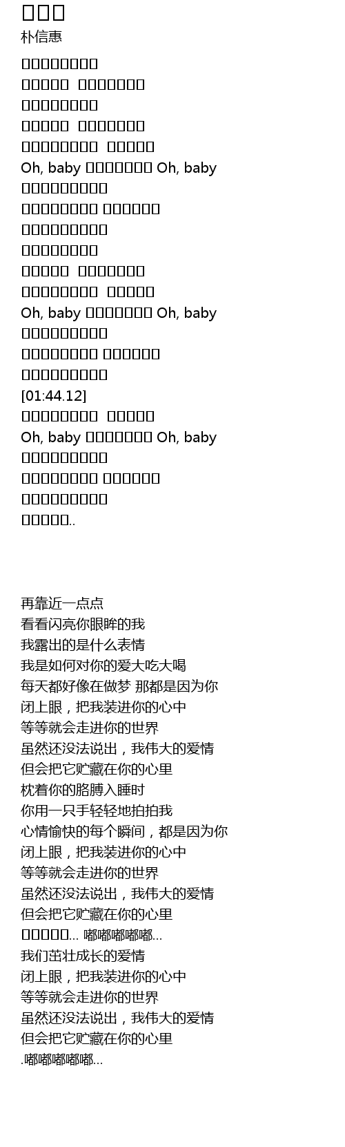 | [02:17.36] | Oh, baby 눈감아나를담아 Oh, baby |