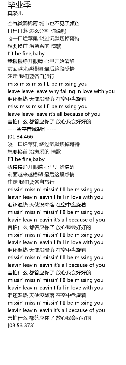 | [01:01.152] | miss miss miss I' II be missing you |
