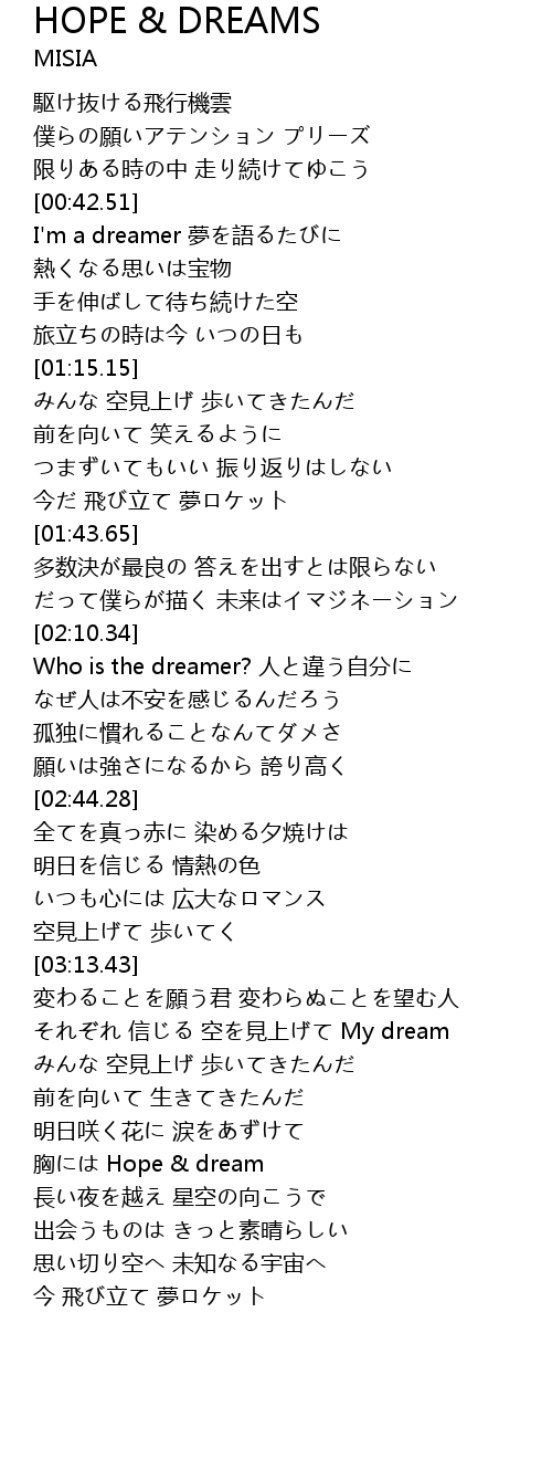 | [00:43.57] | I'm a dreamer 夢を語るたびに |