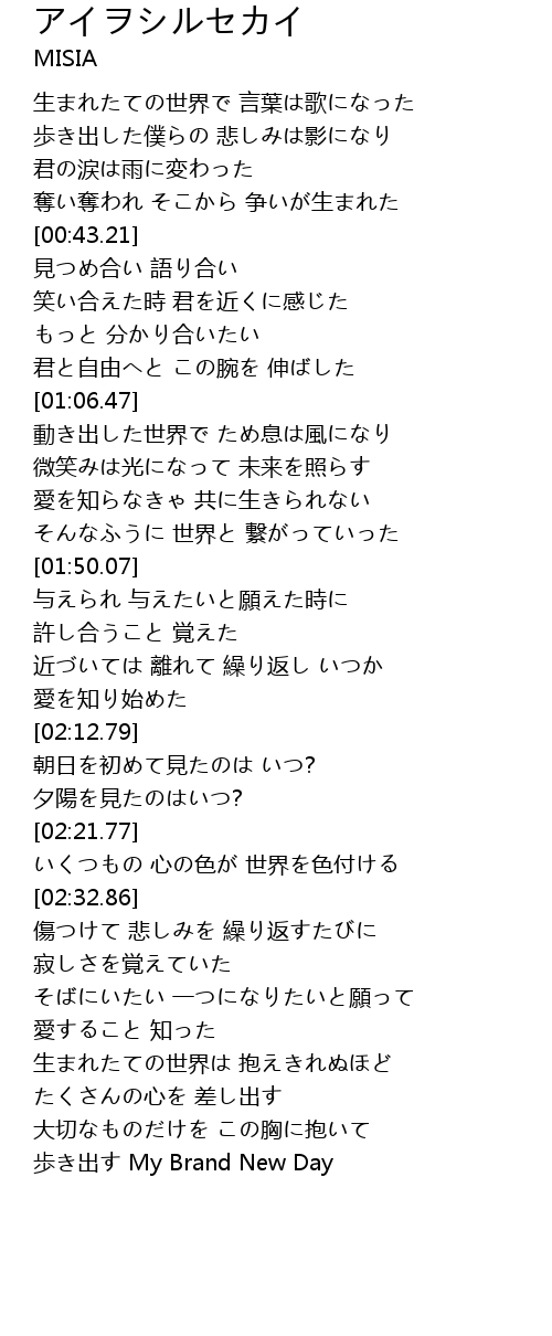 | [03:16.92] | 歩き出す My Brand New Day |