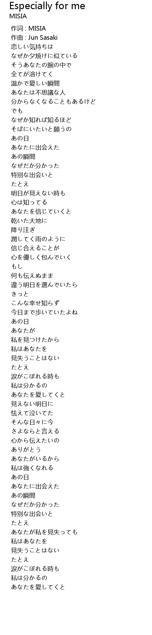 作词 : MISIA |