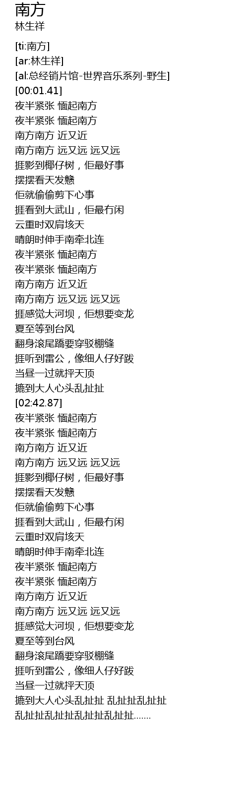 | [03:35.52] | nan fang nan fang yuan you yuan yuan you yuan |