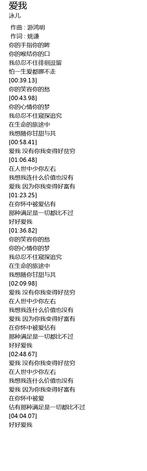 | [04:05.03] | 好好爱我 |